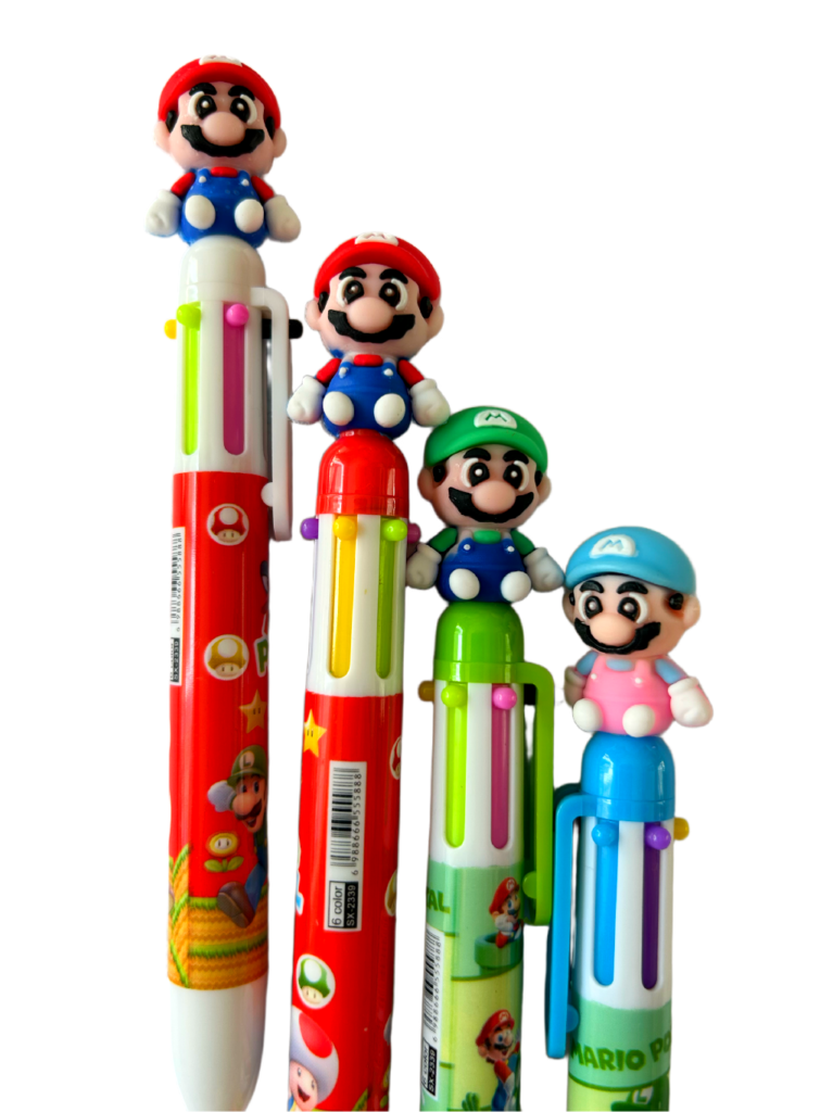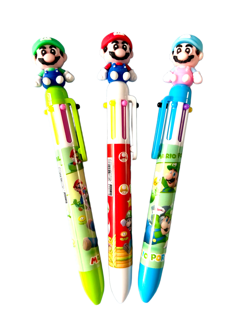 A caneta esferográfica 6 cores Mario Bros é perfeita para os apaixonados pelo icônico universo do Mario. Com um traço fino de 1 mm, ela proporciona uma escrita precisa e fluída, ideal para anotações, rascunhos ou para dar um toque especial aos seus desenhos. Sua estrutura em plástico colorido a torna não apenas leve, com apenas 3 g, mas também visualmente atraente.