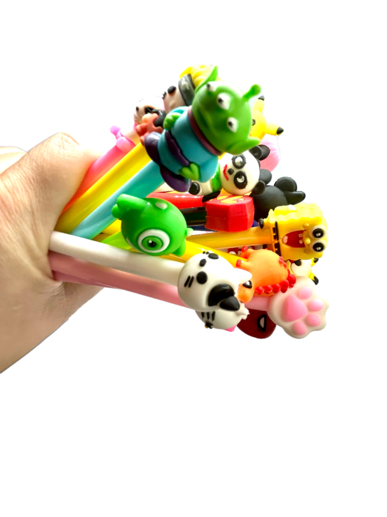 Com toppers fofinhos em 3D e personagens variados, cada caneta é uma surpresa encantadora — perfeita para crianças, colecionadores e para quem ama papelaria criativa.