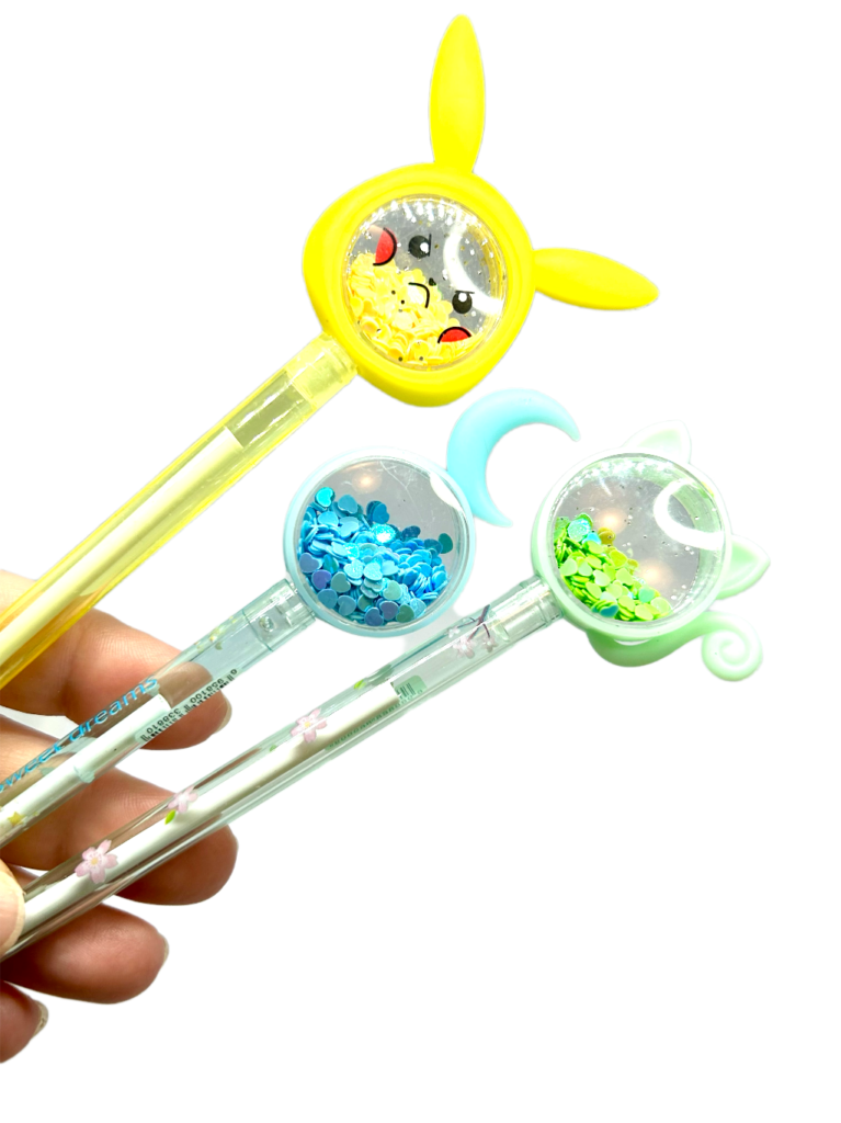 Seu topo em formato shaker, com lantejoulas e confetes soltos, cria um efeito divertido a cada movimento — como um mini globo mágico nas mãos. Com personagens fofos e cores alegres, é perfeita para crianças, colecionadores e amantes de papelaria criativa.