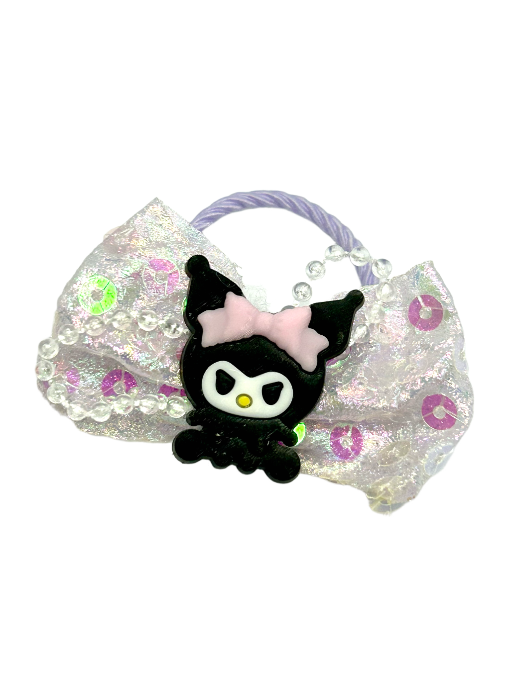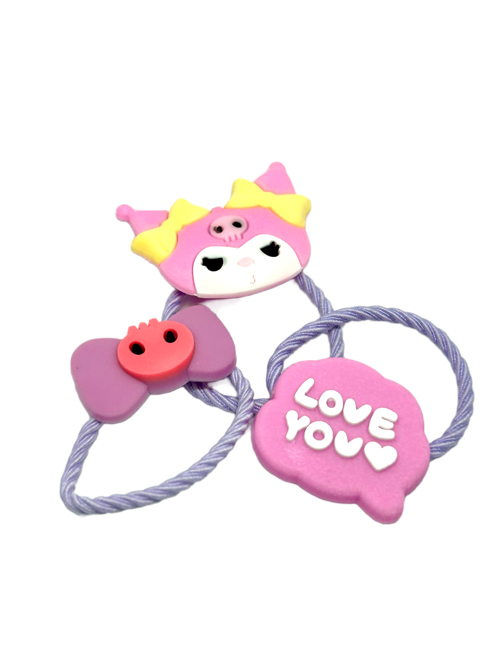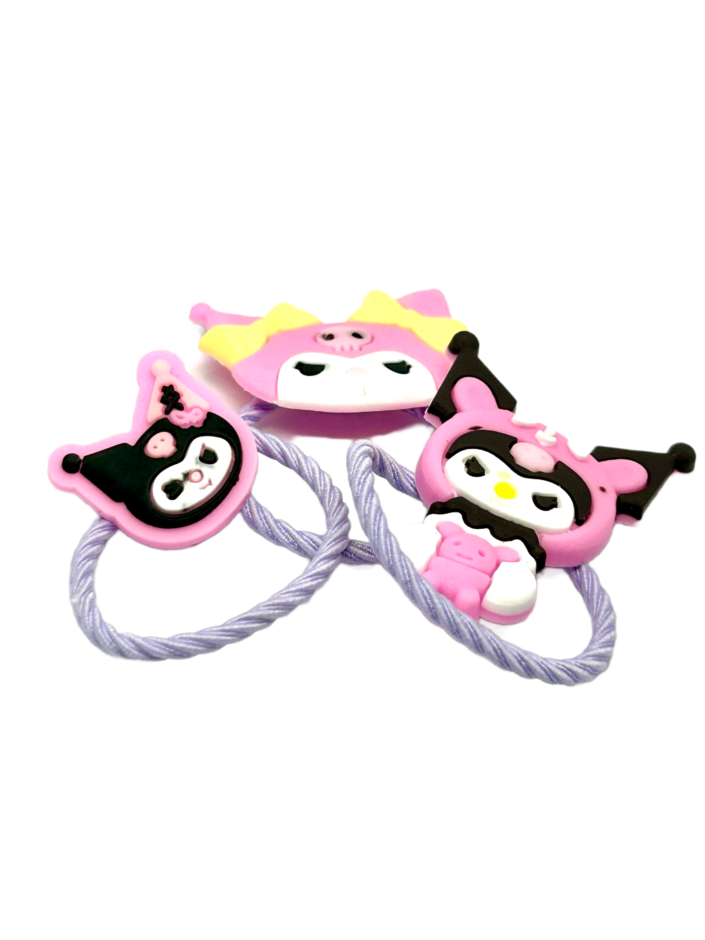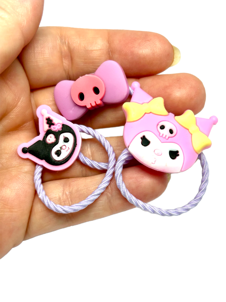 Cheio de atitude e fofura, o Kit de Ligas de Cabelo Kuromi traz a personagem queridinha da turma da Hello Kitty para acompanhar os penteados do dia a dia.