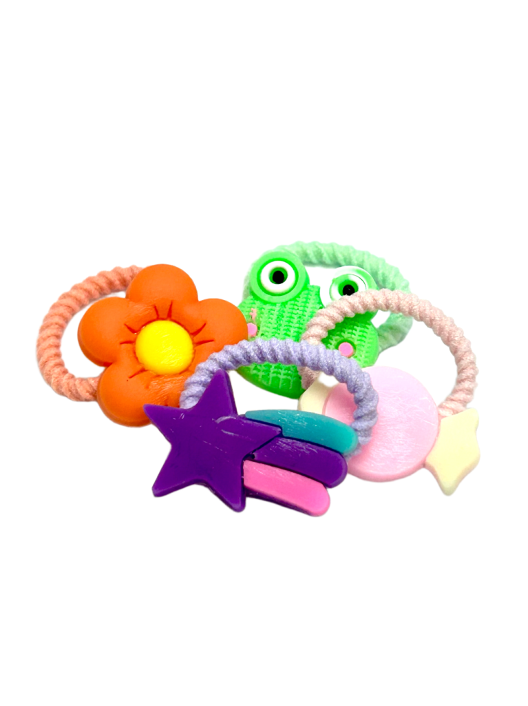 Com ligas macias e confortáveis, pensadas especialmente para cabelinhos finos de bebês, o kit traz aplicações fofas e coloridas que deixam o visual ainda mais encantador, sem apertar ou incomodar.